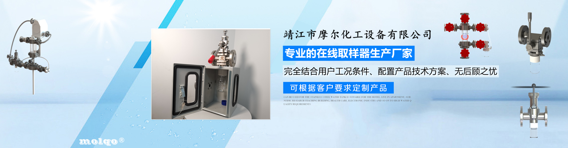 靖江市摩爾化工設備有限公司位于蘇中明珠——江蘇省靖江市城南工業(yè)園區(qū)東進路北側天元艾爾瑞內,另有生產基地位于靖江市經(jīng)濟技術開發(fā)區(qū)新號路1號鼎電科技園內。我公司由數(shù)名長期從事化工生產、氟塑襯里模具開發(fā)以及機械自控設備的專業(yè)人員共同合作成立,致力于提供客戶最優(yōu)的高效在線取樣、反應及精餾分離設備,為客戶提供合理的設備選型方案,以幫助客戶提高綜合生產效率以及改善生產現(xiàn)場環(huán)境為目標。 本公司主要制造及銷售的產品有:釜用在線取樣裝置,管道取樣閥,釜用清洗噴淋裝置、搪玻璃設備、GMP專用搪玻璃設備、氟塑襯里設備、攪拌器、釜用機械密封、氣動閥門及搪玻璃管道、襯氟閥門管道、非標不銹鋼容器,精餾塔塔器、片式冷凝器及PTFE密封件、鋯、鈦、鉭、鎳等加工件制品。我司是一家集研發(fā)銷售、設計咨詢服務于一體的專業(yè)···
